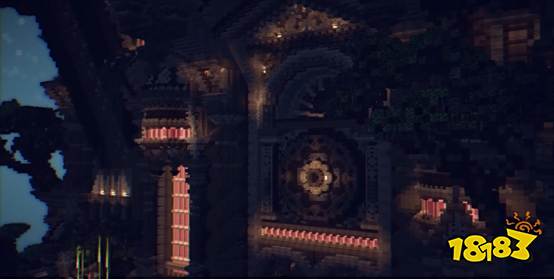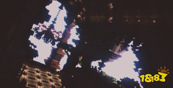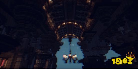在这座声势浩大的建筑里,作者通过材质与光影的配合,打造出了辉煌后的荒凉感。材质整体偏暗,而吊灯与地砖的光在这种昏暗的环境里呈现出了一种朦胧的感觉,让整座建筑都仿佛在雾里一般模糊不清。
