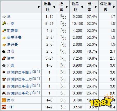 每个沉船补给储物箱都含有3–10叠物品,分布情况如下: