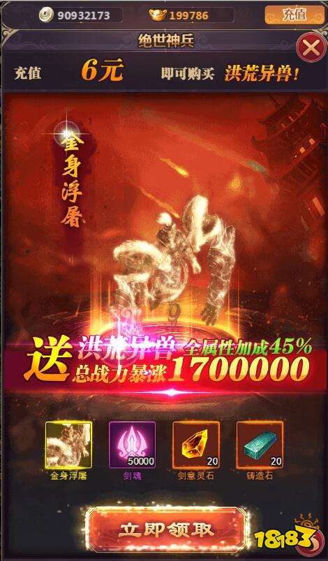 充值比例1:10000★福利重磅升级,开局就送GM3,定制商城1元开启,海量道具超值1元宝任性买买买,属性战力暴涨up up up!★登录福利加送,上线元宝*188888,铜钱*8888万,充值比例1:10000(元宝),首充2倍还有5倍,充的多送得多,首充即可获得洪荒异兽金身浮屠,酷炫外形,属性狂加成,战力暴涨;★开局豪气送万抽,极品神装、道具领到手发软!抽卡一时爽,一直抽一直爽!★策划暗改,在线狂送充值卡,VIP经验、元宝点击就送,你敢玩,我们就敢送!★各种VIP礼包免费领,强力帅气异兽斗战胜佛,神兵诛仙、轩辕剑、帝龙炎等,绝版时装,帅气称号,仙宠雏凤,生命不息,狂送不止!★全新玩法休闲挂机,一键大招轻松秒杀全屏,真正不肝不氪告别烦恼!★后缀说明:上线送GM3,GM商城购买特权开启,海量道具、材料、货币、异兽等超值1元宝任性buy,爽到飞起!在线30分钟可以免费10连抽一次,每天上线最多一次10连抽,每日0点刷新!充值卡快乐抽取,最高可得98元充值卡,直送VIP经验和等值元宝,还可激活线上活动!