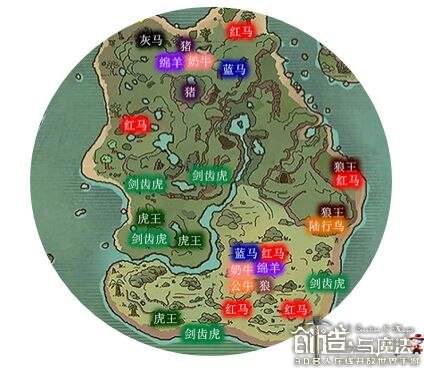 灯塔附近有1级鸡和5级猪;黎明山脉有5级鸡和10级的猪牛羊;丰颂草原里全是牛羊;南北的海滩都有小乌龟,只不过北边乌龟5级南边10级。