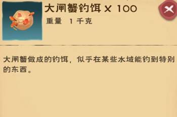 使用大闸蟹钓饵钓鱼,有较高概率可以调到各种珍稀的鱼类。