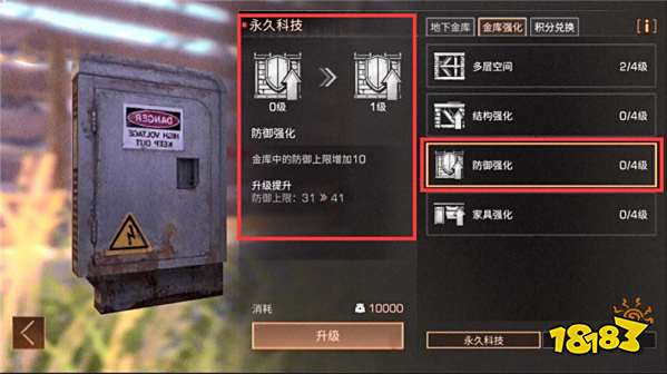这里推荐优先升级多层空间,可以获得多一层的地下室使用权。其次是防御强化,这样可以放置更多的防御装置,例如贴墙炸弹,汽油桶之类的,因为这些装置如果被击破,来抄家的幸存者会有更多的威胁分数,更容易让金库的毒气装置激活!释放毒气赶走抄家贼!