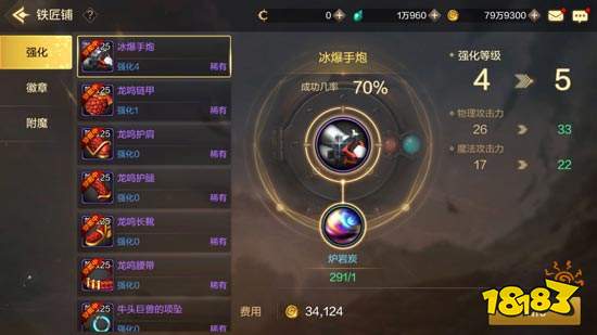 相当耗费金币的一种打造方式,后期所需金币数额每次以百万计。优先打造“力量/智力、暴击、命中”。