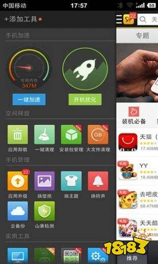 6:一键安装手机应用和游戏,备份、还原手机数据、清理、截图。