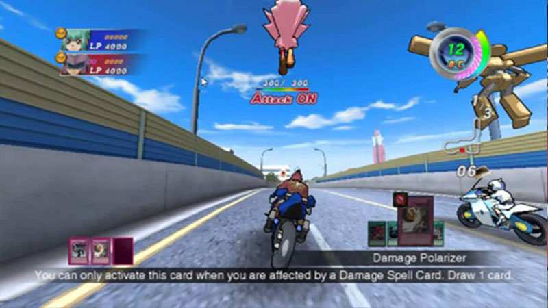 本作是根据KONAMI最新播出的动画"游戏王5D's"改编而来的游戏,原作讲述的是在未来流行起一种乘坐新式机车进行的竞速比赛,被成为"Lighting Duel"参加者除了进行竞速外,还需要通过召唤卡片来打击对手取得胜利,动画中的主要角色都会在游戏中登场,赛前玩家可以自由挑选赛道和卡组,并在竞速的过程中召唤卡片进行战斗,帮助自己快速通过终点