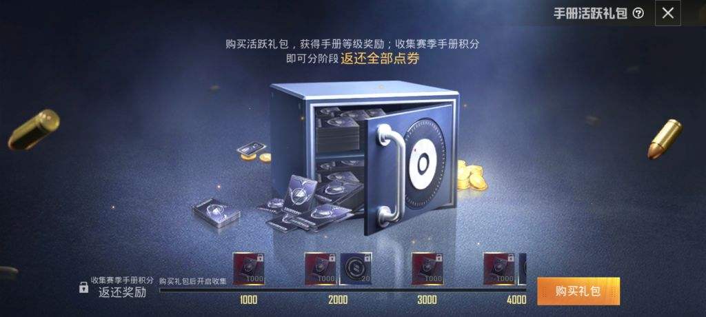 可以先买168豪华手册,之后再买活跃礼包。就算已经买过的小伙伴也不用后悔,这个先后其实影响不大,就是你提前存一部分点券进去,这部分点券回给你提前解锁一部分手册等级,然后你后面手册积分填上了就会把点券给你,不会多积分,只会有物资币奖励。