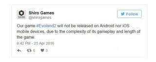 只是游戏开发团队Shiro Games在2016年曾表示进化之地2(Evoland 2)由于游戏系统的复杂性,将不会推出移动版,令不少移动玩家心灰意冷。然而这事态似乎又有了180度的大反转!