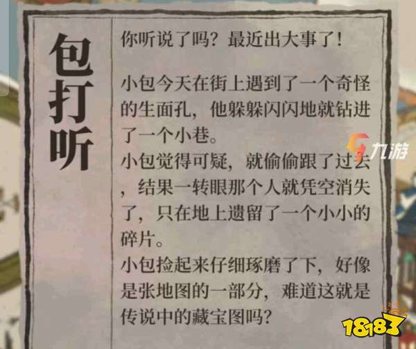 以上就是江南百景图包打听藏宝图碎片如何获得以及获取方法介绍,目前这个藏宝图碎片的刷新概率是比较随机的。