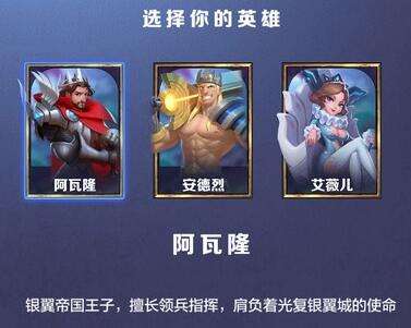 在玩家第一次进入剑与家园的时候,游戏将会提供三位初始英雄让玩家来选择,分别是艾薇儿、阿瓦隆和安德烈,根据玩家的选择将会影响之后的发展。