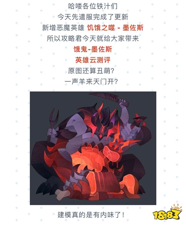 今天先遣服完成了更新,新增恶魔英雄饥饿之噬魔-墨佐斯,下面小编就为大家理性分析一下新恶魔饿鬼的强势,攻略新英雄饿鬼技能全解析!目前云测评五恶魔天下第一!有望打破伊索米亚大陆格局。