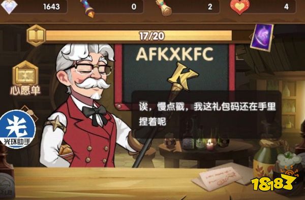 得了吧,有兑换码我也不会去买KFC的,但是我突然眉头一皱发现事情并不简单,为什么不是KFC联名AFK而是AFKXKFC。这其实就是隐藏的兑换码。