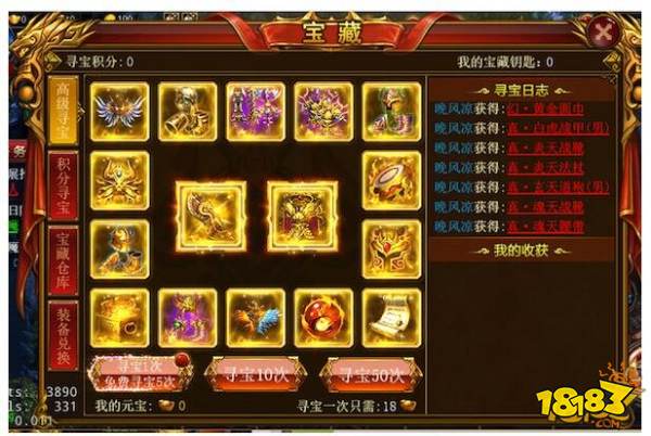 宝藏系统里面到底有什么物品呢,超强神装、绝世坐骑、海量宝物等。每当假日活动期间,寻宝获得神装概率提高3倍。另外,寻宝十连许打九折哦!