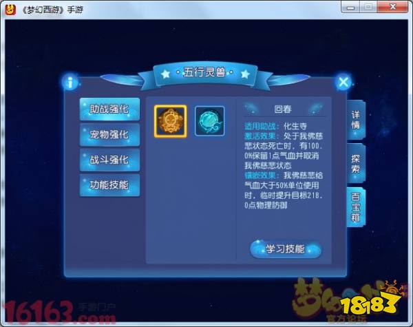 由于给了工坊道具,所以探索后灵兽给的技能多了,一个是增加物防,一个是增加治疗强度。