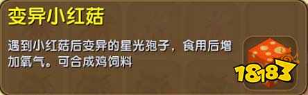 遇到小红菇后变异的星光孢子,使用后增加氧气。可合成鸡饲料。