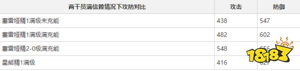 天赋1充能护服非常强大,充能后能提供可观的攻防,攻击力提升的同时也提升了塞雷娅的奶量。精2后充能完毕的塞雷娅面板数据非常可观,下图为满信赖塞雷娅与星熊的攻防属性对比。