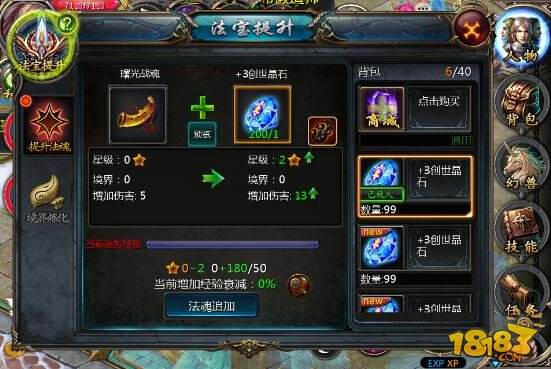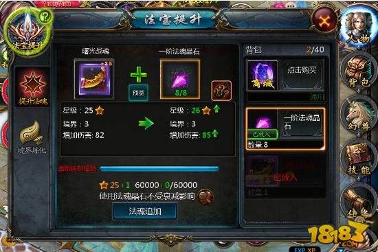 在魔域口袋版口袋版中玩家可以通过法宝来提升自己的基本战斗能力,然而在魔域口袋版游戏中法宝升级技能也是一个必须要考虑的地方,今天18183小编就来讲一讲在魔域口袋版游戏中如何提升法宝的法魂星级!