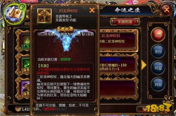 拥有龙神权杖并关联你的50星坐骑幻兽后,你每次注入魔石的力量(一阶188点魔石,二阶688点魔石),奥扎奇的兽魂都会响应你的召唤,在15天内附身在你的坐骑幻兽上,使它的外形在一段时间内变为幽灵龙奥扎奇,拥有它的凌人风姿,带领你翱翔在天空,俯瞰亚特大陆!