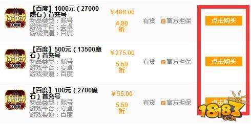 2、根据您的需要,选择“点击购买”您所需的首充号。