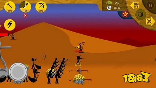 3、带领火柴人大军开采金矿资源,学习战斗技能,与敌人战斗,
