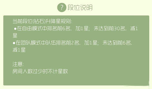 在团队模式中队伍排名前2名,加1星;未达到前6名,减1星。