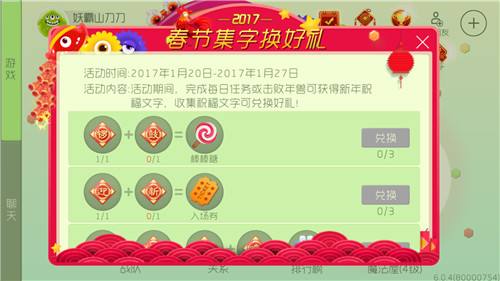 活动内容:活动期间 ,完成每日任务或者击败年兽,可获得新年祝福文字,收集祝福文字可兑换好礼!
