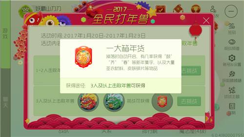 3人及以上击败年兽,挑战可获得