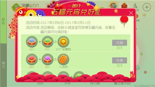 活动内容:活动期间,击败小鸡宝宝可获得五福元宵,收集五福元宵可兑换好礼!