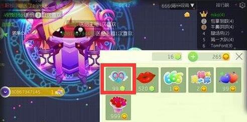 在游戏中,祝福99就是观战界面中,那个长着小翅膀,上面有“99”两个数字的礼物,那就是“祝福99”。每个需要99个彩豆,如果你要给好友赠送9次的话,那么需要981个彩豆,这不是一笔小数目,需要大家的彩豆数量非常多才行,不然很可能就赠送不了那么多次,也领取不了最终的情人节礼物哦。