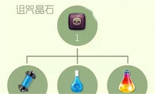 诅咒晶石:蓝水晶能量泵(玫瑰精露*30+精灵泉水*30)*1+星辰之泪*3+七彩粘合剂*3