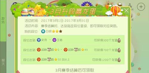 球球大作战赢龙蛋活动怎么玩?3月龙蛋活动规则介绍。大家在活动期间,达到指定的段位星级,就能领取对应的龙蛋奖励。下面一起来看看吧。