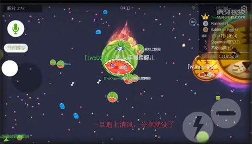 老虎很明显可以一波吃掉清风的,但是因为队友被偷,强行送了一波,在大球互相搏斗之间,保护队友的意义就显得无比重要,不能像老虎一样从两边八分合球,要覆盖在队友身上,然后再迅速的分散,不但可以给队友胀大,前面的球还可以给队友垫步。
