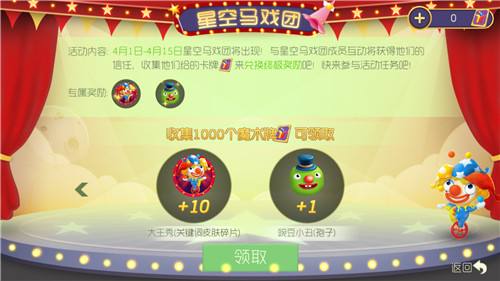 收集1000个魔术牌:可领取10个大王秀(关键词皮肤碎片)和豌豆小丑孢子1个
