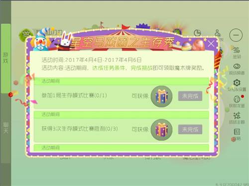 活动期间,获得3次生存模式比赛胜利,可得魔术师的星空礼盒,打开后,可得魔术牌*50,彩豆*30,并有几率获得金蘑菇奖励;