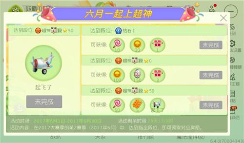 活动内容:在2017大赛季的第2季(2017年6月)中,达到指定段位,即可获取对应奖励。