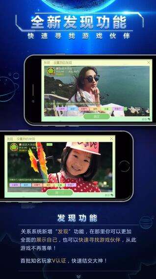 关系系统新增“发现”功能,在那里你可以更加全面的展示自己,也可以快速寻找游戏伙伴,从此游戏不再落单!