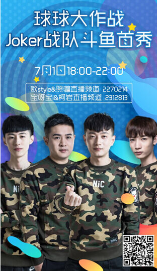 世界冠军Joker战队入驻斗鱼 7月1日华丽首播来袭