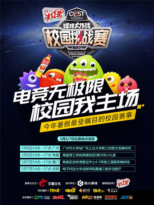 由统一冰红茶独家冠名,中国电子竞技娱乐大赛(China Electronic Sport Tournament,简称CEST)携手巨人网络、艾播文化举办的CEST《球球大作战》校园挑战赛正在火热进行中!