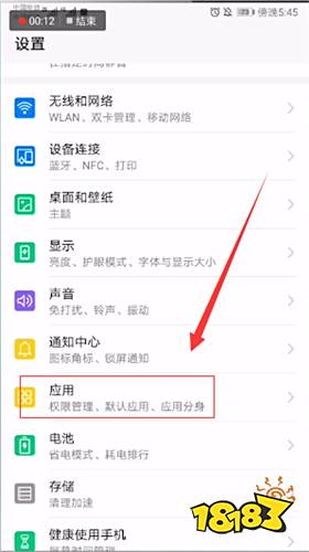 首先在手机桌面点击“设置”图标进入,进入设置以后,选择”应用“信息。