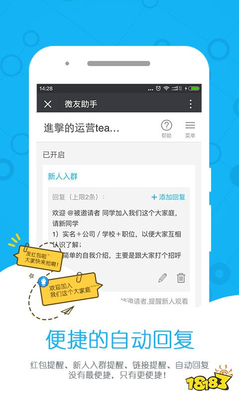 当有人加你时,自动通过验证请求,并且你可以设置消息作为自动回复。