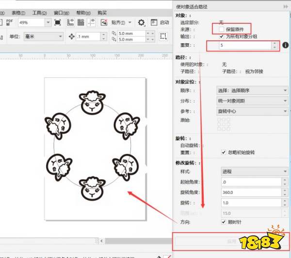 示例中使用的是素材库中的一个小羊图案。