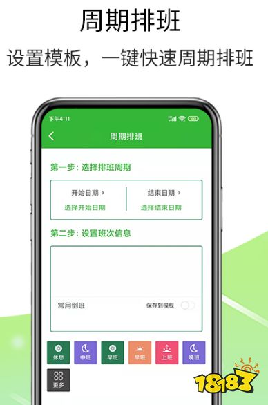 作为一款简单的排班工具,你可以在这里设置班表的模版,它可以为你快速的生成周期的排班情况,包括了班次的信息和休息时间,让你不至于错过休息和重要班次。
