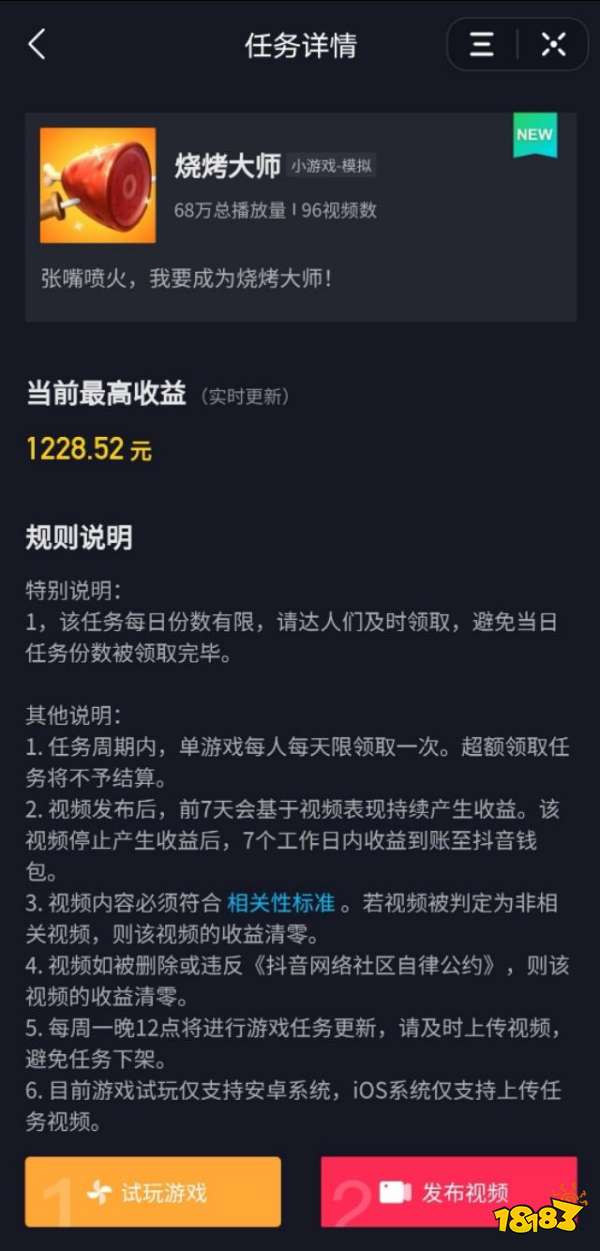 注1:视频中的小游戏必须与任务对应。如果任务为「抖音小游戏」,必须出现「抖音小游戏」小程序画面;或出现「抖音小游戏」内的任意小游戏画面,同时必须以字幕或解说告知该游戏名称。