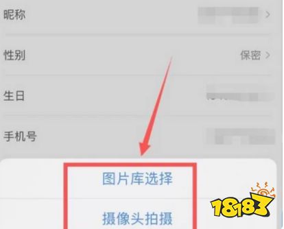 5、然后,在弹出的列表中点击“图片库选择”或“摄像头拍摄”。