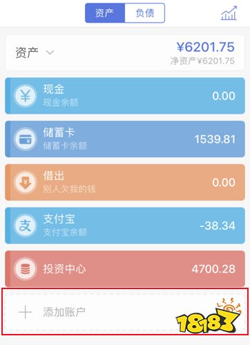 1、打开口袋记账,选择添加账户。