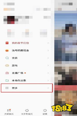 2、点击之后会弹出侧边菜单栏,在菜单栏中选择“更多”,如下图。