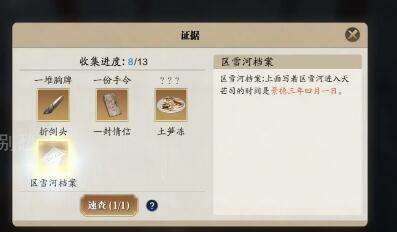 以上就是18183小编带来的本期天涯明月刀手游捕快断案区雪河案证据选择什么攻略的全部内容了,希望对大家有所帮助。