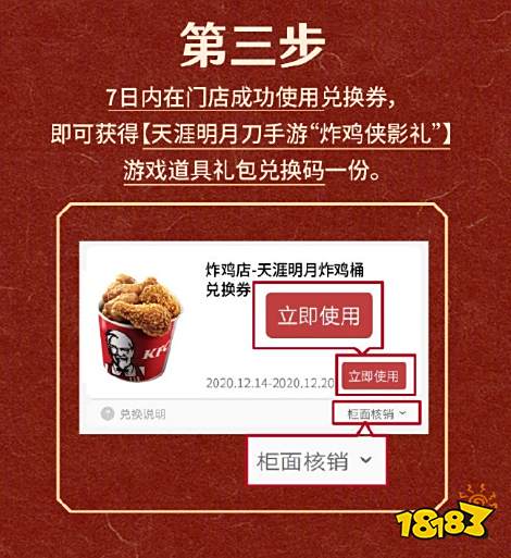 以上就是小编整理的关于《天涯明月刀手游》KFC肯德基兑换码兑换方法的全部内容,更多游戏攻略请持续关注3DM手游网!
