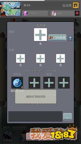游戏中悟道峰是升级功法的地方,一开始把开光境的四个弟子都放进去。修行满了在进行替换,这里有一点就是送药不要忘记了。弟子功法大乘状态需要在悟道峰上面把主功法升级到12级,每个级别都会提升你弟子的修行级别上限。悟道峰中长老职位不是很重要新手可以不用管。