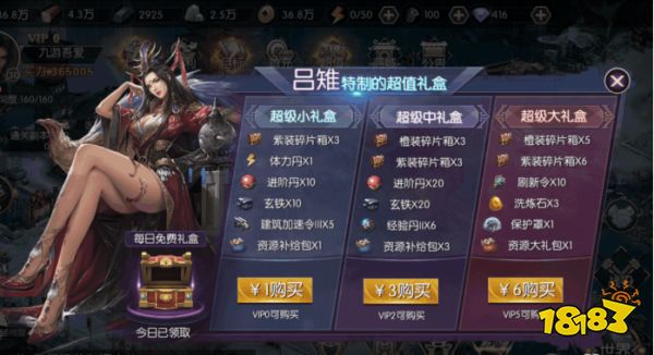 2体力购买:根据VIP的等级,购买体力的次数有所限制。平民一天可以获取购买2次体力,每次体力20点。