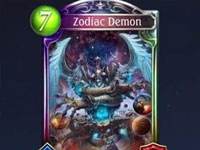 影之诗新系列Starforged Legends(暂译:星铸传说)的首张虹卡十二宫恶魔(暂译) 职业:中立 稀有度:传说 消耗:7 类别:随从 身材:5/57/7 入场曲:将一个原费用小于(等于)7的从者从自己手牌置入战场并将其破坏, 并对一个随机敌方从者造成X点伤害。X等于所选随从的攻击。 如果敌方战场上没有从者,则会对